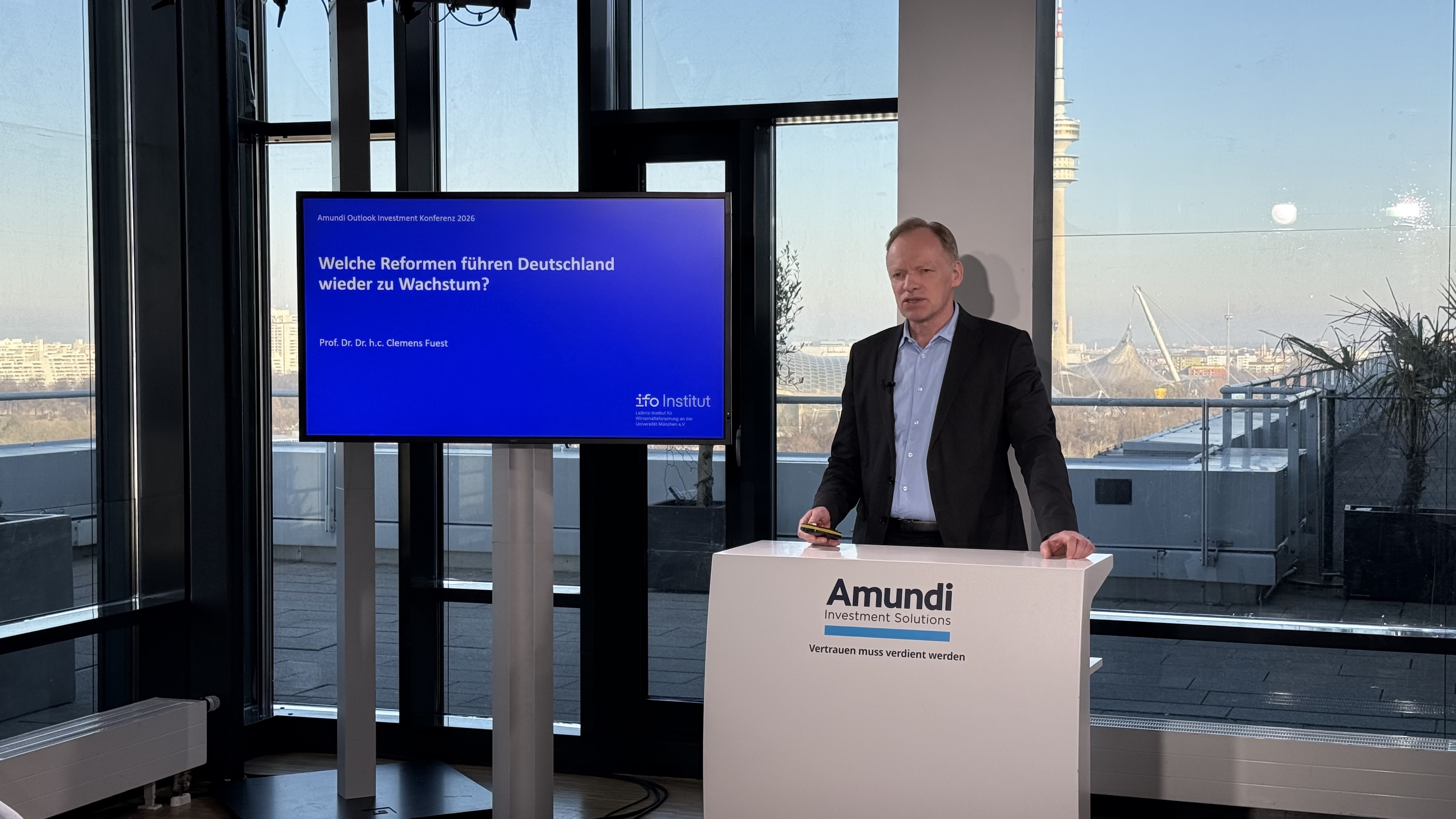 Welchen Herausforderungen sich Deutschland als Wirtschaftsstandort in 2026 stellen sollte, analysierte Prof. Dr. Dr. h.c. Clemens Fuest auf der Amundi Outlook Investment Konferenz am 21. Januar. Vor über 1.500 Online-Gästen betonte der Präsident des ifo Instituts für Wirtschaftsforschung, dass die deutsche Konjunkturschwäche kein Schicksal bleiben muss. Welche Weichenstellung die Politik für mehr Wachstum stellen sollte, erläuterte er im ausführlichen Interview.